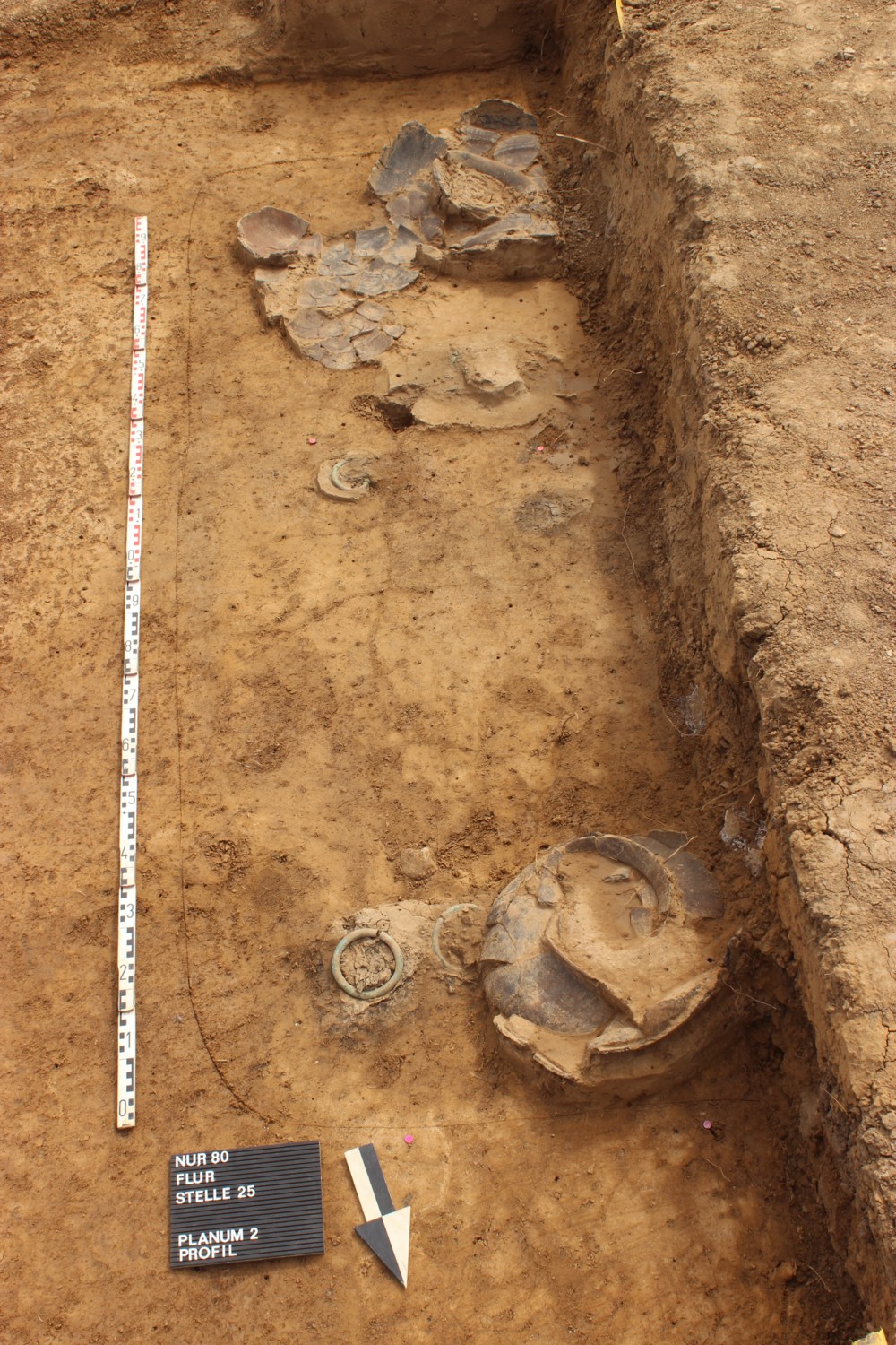 Es handelt sich um ein bisher unbekanntes Hallstatt-Gräberfeld mit einer bemerkenswerten Ausstattung. Hervorzuheben ist Grab St. 25, ein Frauengrab. Aufgrund einer ehemaligen Überhügelung, die heute verloren ist, liegen die Befunde nur knapp unter der modernen Oberfläche. Die Tote wurde in gestreckter Rückenlage in nordsüdlicher Ausrichtung mit dem Kopf im Süden beerdigt. Die Verstorbene ist im östlichen Teil der Grabkammer niedergelegt worden und trägt offenbar ihre Tracht.